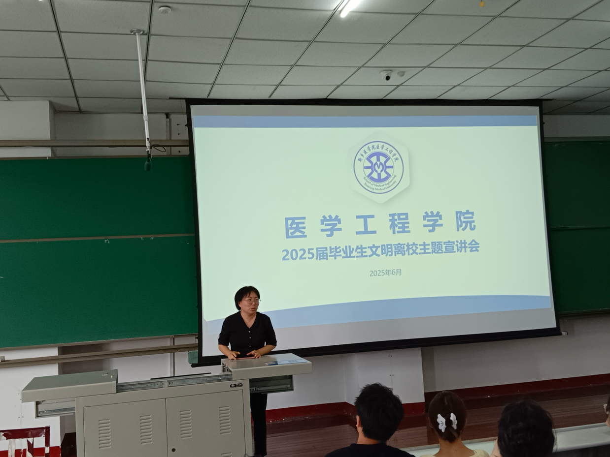 此次宣讲会不仅为2025 届毕业生提出了明确的离校指导,是一堂生动的感恩教育课。相信在学院的悉心引导和同学们的共同努力下,2025 届毕业生定能以文明、理性、有序的方式完成学业,带着对母校的眷恋和感恩,迈向人生新征程,为学校争光添彩,为医学工程学院再创辉煌。(供稿:高晴晴)