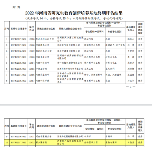 “河南省研究生教育创新培养基地”是河南省教育厅构建产学研相结合的研究生教育创新实践平台,旨在推进研究生培养机制地改革与创新。在近日公布的河南省教育厅公布2022 年河南省研究生教育创新培养基地终期评估结果中,我院与河南驼人医疗器械集团有限公司共建的河南省生物医学工程研究生创新培养基地在终期评估中获评优秀。