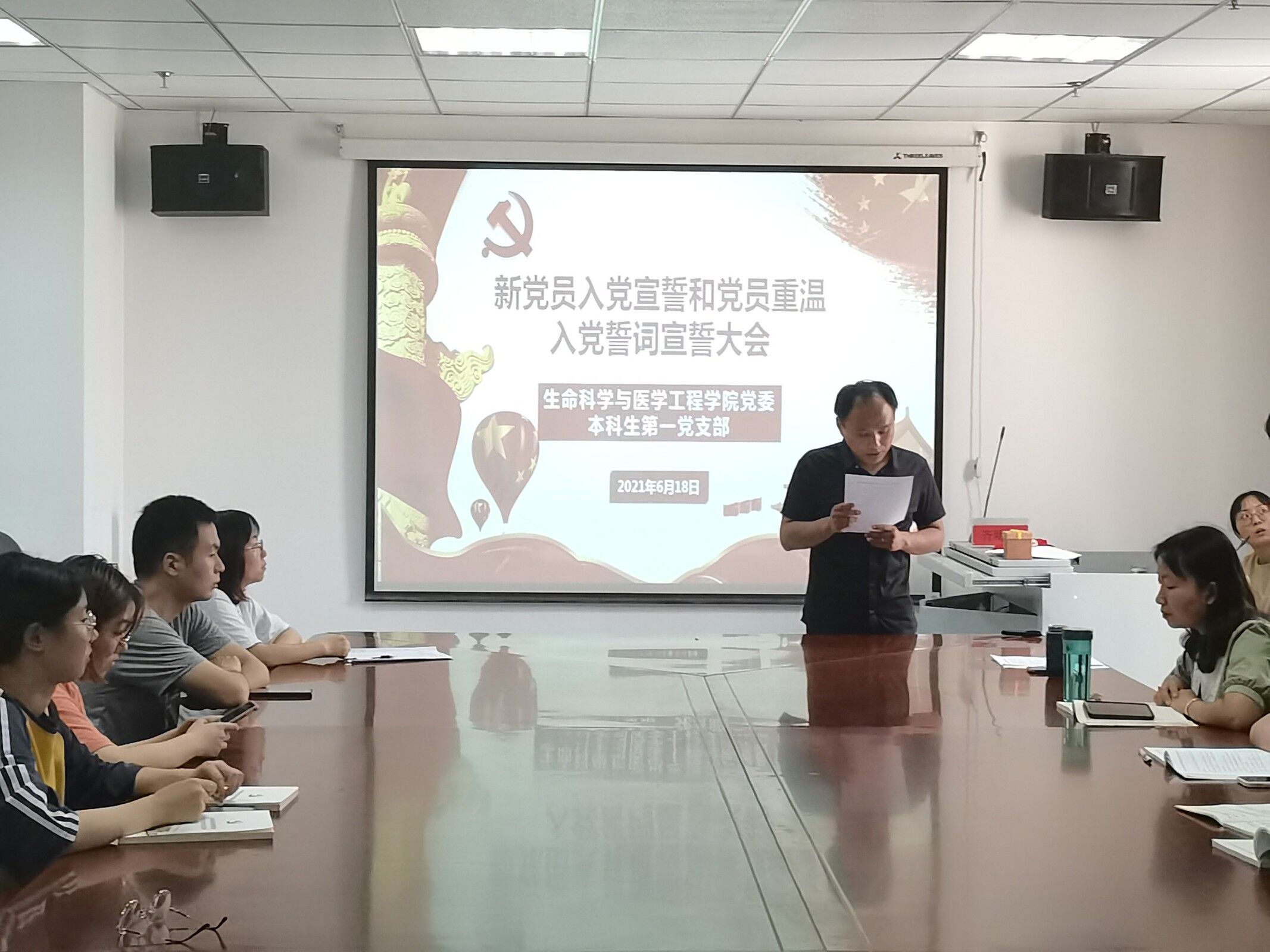 2021年6月18日下午5点, “一心向党、永远跟党走”主题党日活动之新党员入党宣誓和重温入党誓词仪式在科技楼716隆重举行。参加此次大会的有大学生党支部书记陈洪涛,辅导员范亚桢以及全体学生党员。