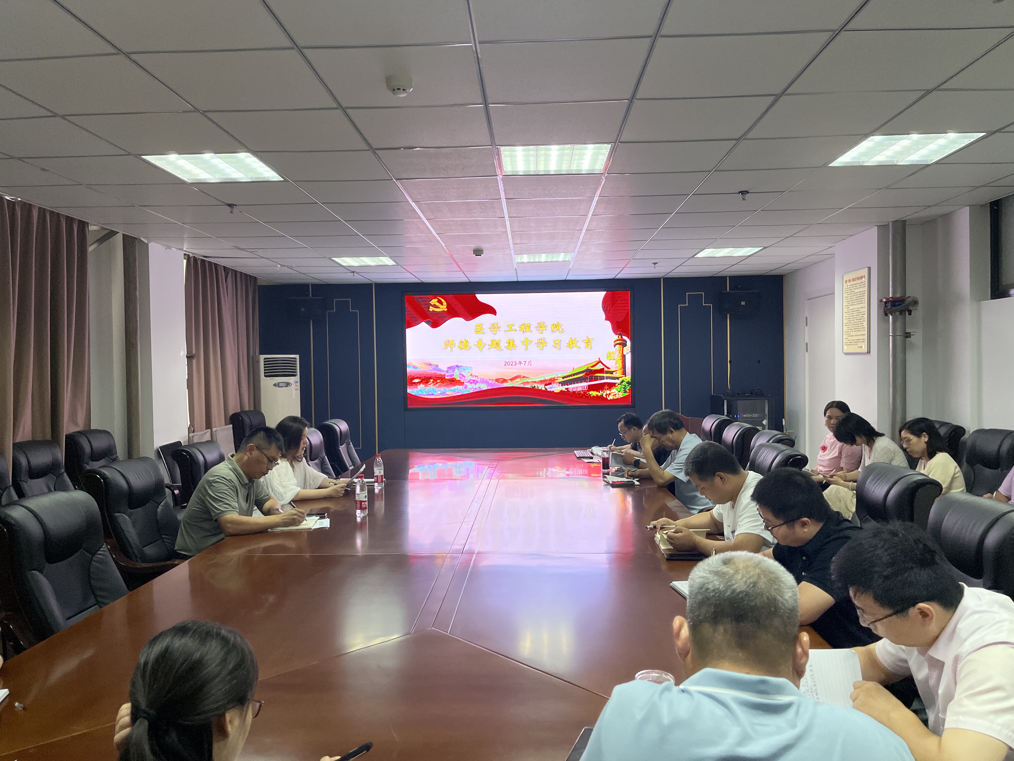 7月14日,学院在科技楼714会议室召开师德集中学习教育会议,专题学习习近平总书记对教师队伍建设的重要指示批示精神、师德师风相关文件,以及观看警示教育片。会议由学院党委书记王守英主持,学院领导班子成员、全体科级干部及教师代表参加会议。