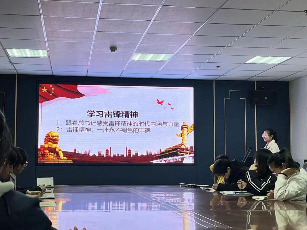 3月6日,理论宣讲志愿活动启动仪式于科技楼716会议室正式召开。本次启动仪式由团委书记陈洪涛、辅导员范亚桢共同主持,我院党员与预备党员参与本次活动。会议中,陈洪涛指出要围绕学习贯彻习近平新时代中国特色社会主义思想,不断加强对党的创新理论的学悟践行,服务推动主题教育不断走实走深。学习,传承并弘扬雷锋精神,让学习雷锋精神在校园内蔚然成风。范亚桢提到,师生都要学习雷锋的奉献精神,在各项活动中,不计较个人得失,积极带领同学们共同成长。