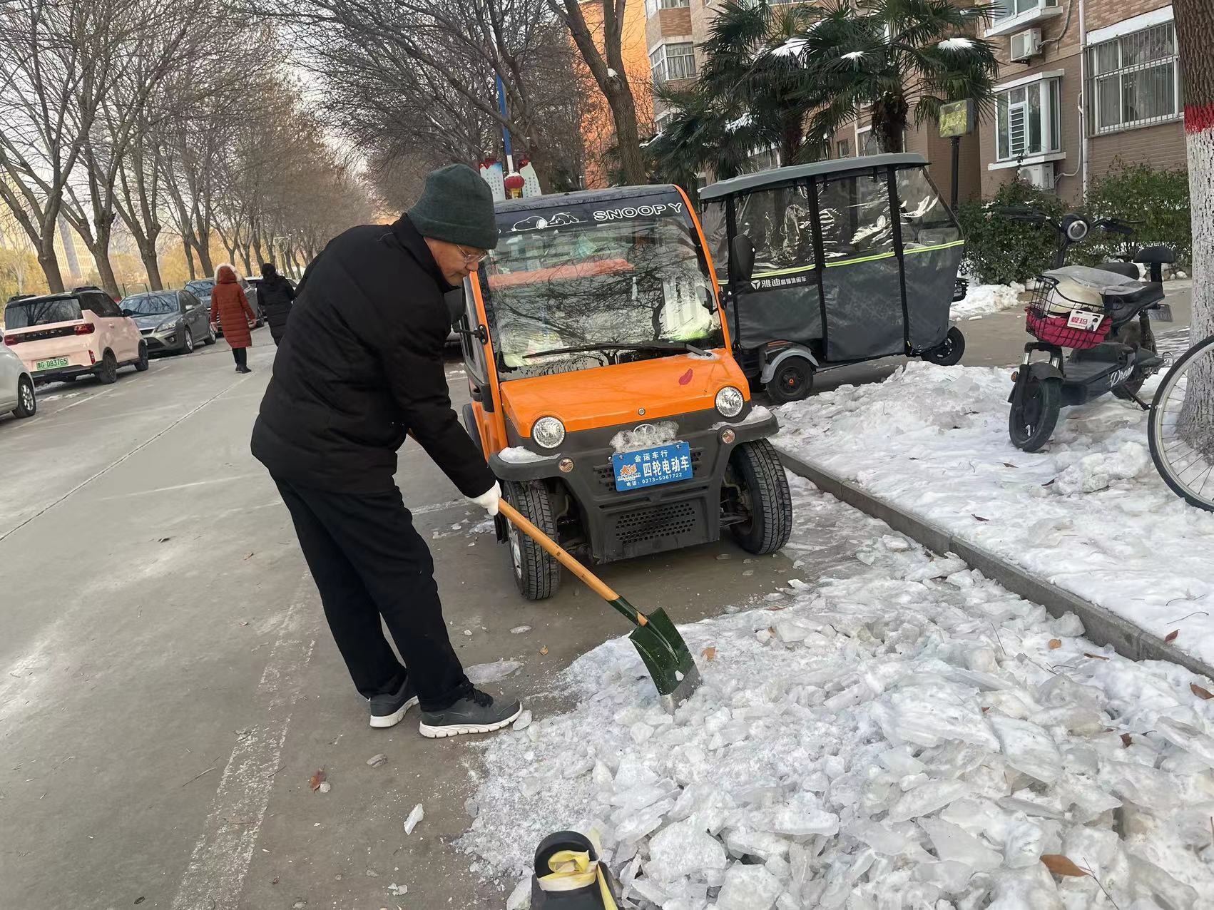 暴雪过后,银装素裹,路面结冰湿滑。为了保障师生平安出行,我院党委志愿者们于12月22日在校园内破冰除冰,还原道路本来面貌。
