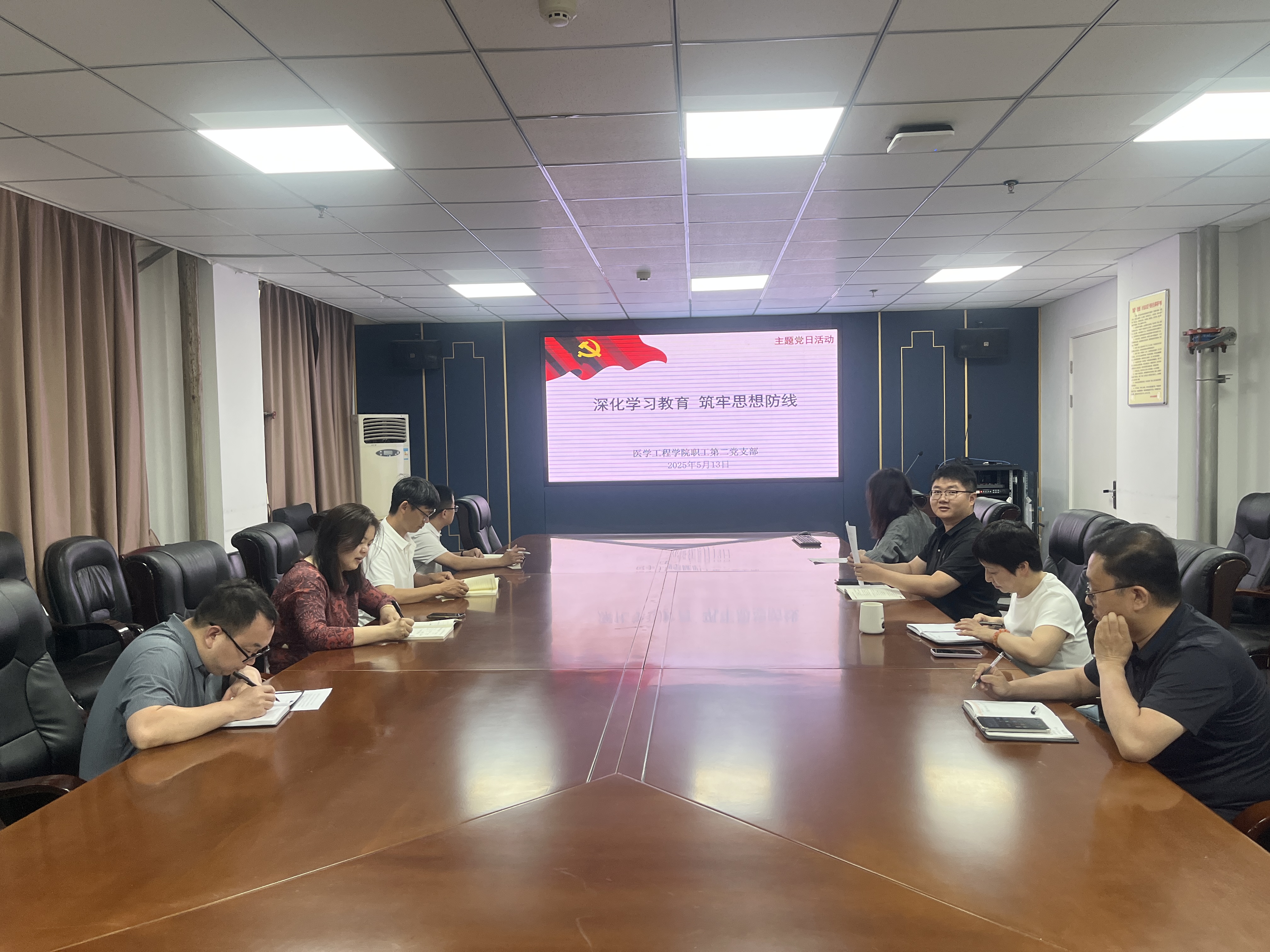 为进一步强化党员思想建设,提升党性修养。5月13日上午,医学工程学院职工第二党支部在科技楼716室会议室开展了“深化学习教育,筑牢思想防线”主题党日活动,支部全体党员参加会议,学院党委副书记张洁以普通党员身份参加。会议由支部书记范晓峰主持。