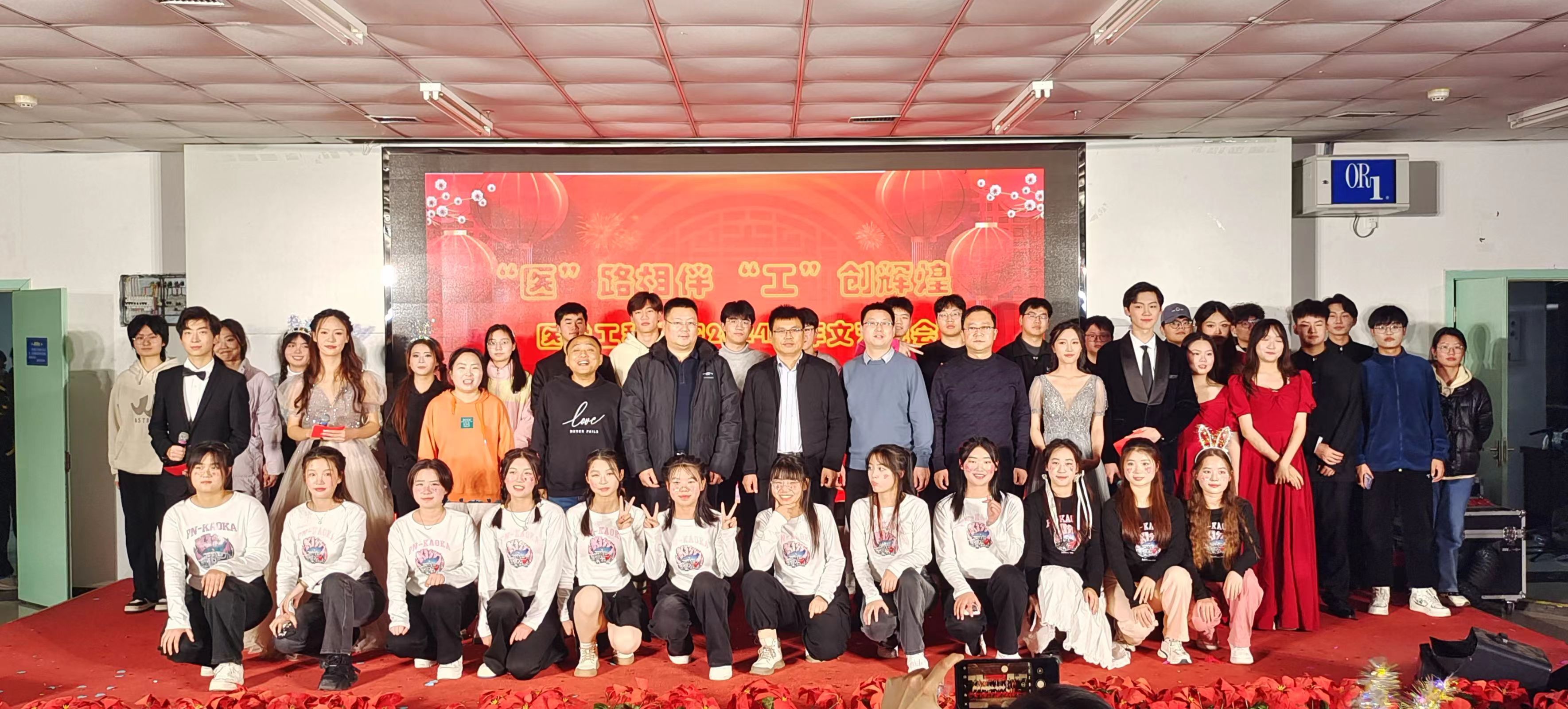 在抽奖的欢乐气氛中,“医”路相伴,“工”创辉煌医学工程学院2024新年文艺晚会圆满落幕,学院党政领导上台与演职人员一一握手,祝贺演出成功并合影留念。(供稿:李璐)