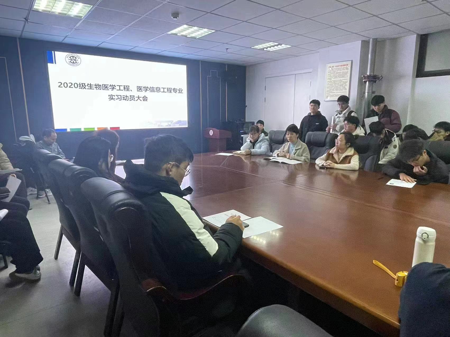 为推动我院生物医学工程、医学信息工程专业学生实习工作的顺利开展,提升学生的实践能力和专业素养。我院于3月1日在科技楼716开展实习动员大会。生物医学工程系主任秦鑫、医学信息工程系主任刘燕、团委书记陈洪涛、辅导员范亚桢以及我院2020级学生参加。