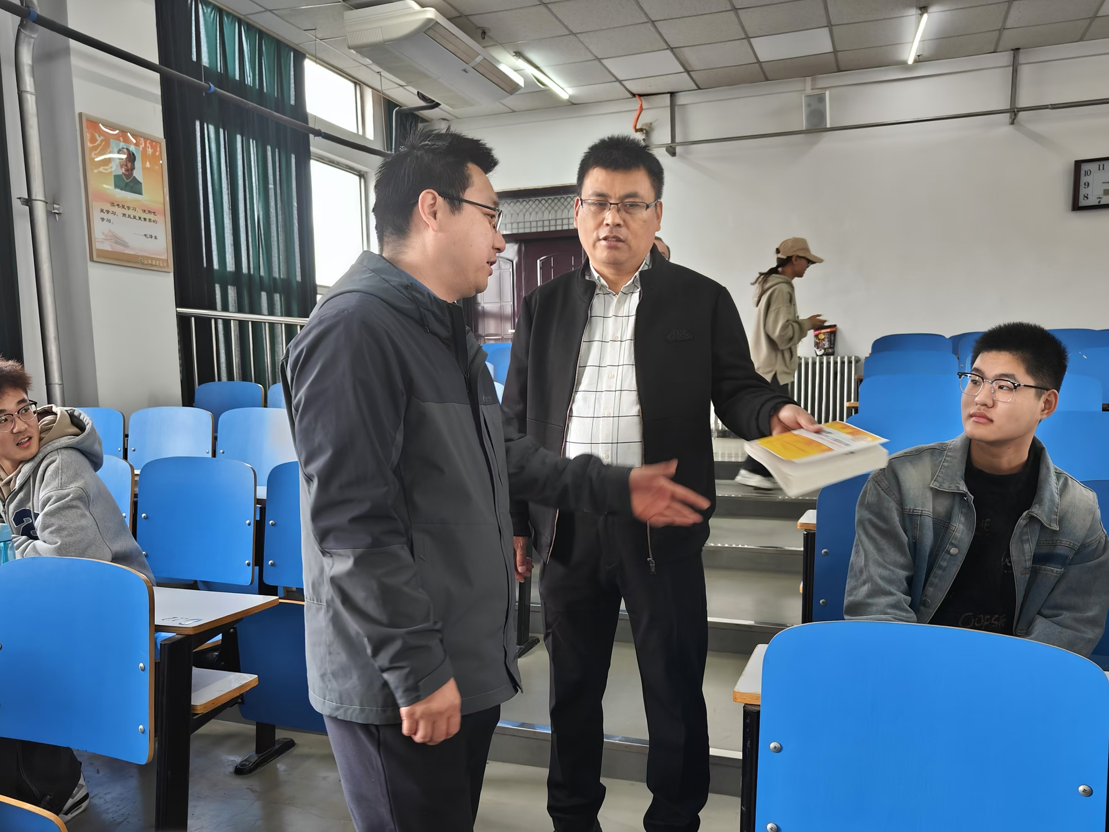 11月15日,我院党委书记王守英、党委副书记张洁、副院长任武、党委委员柴汝闯及相关部门负责人深入教学一线场所督导教学工作,了解课堂教学情况。在巡查过程中,我院领导、老师们走进课堂,全面了解教师的授课状态及学生的学习情况,鼓励学生积极表达自己的想法和建议,巡查工作顺利进行。他们强调,课堂是教学的主阵地,学院将重视每一位教师的教学活动,关心每一位学生的学习体验,及时发现问题,促进教学改革,提升教育质量,积极建设更高效、更专业、更活跃的课堂氛围。此次教学巡查进一步加强了学院课堂管理,确保教育教学工作平稳进行,切实推动我院教育教学水平和人才培养质量再上新阶段。