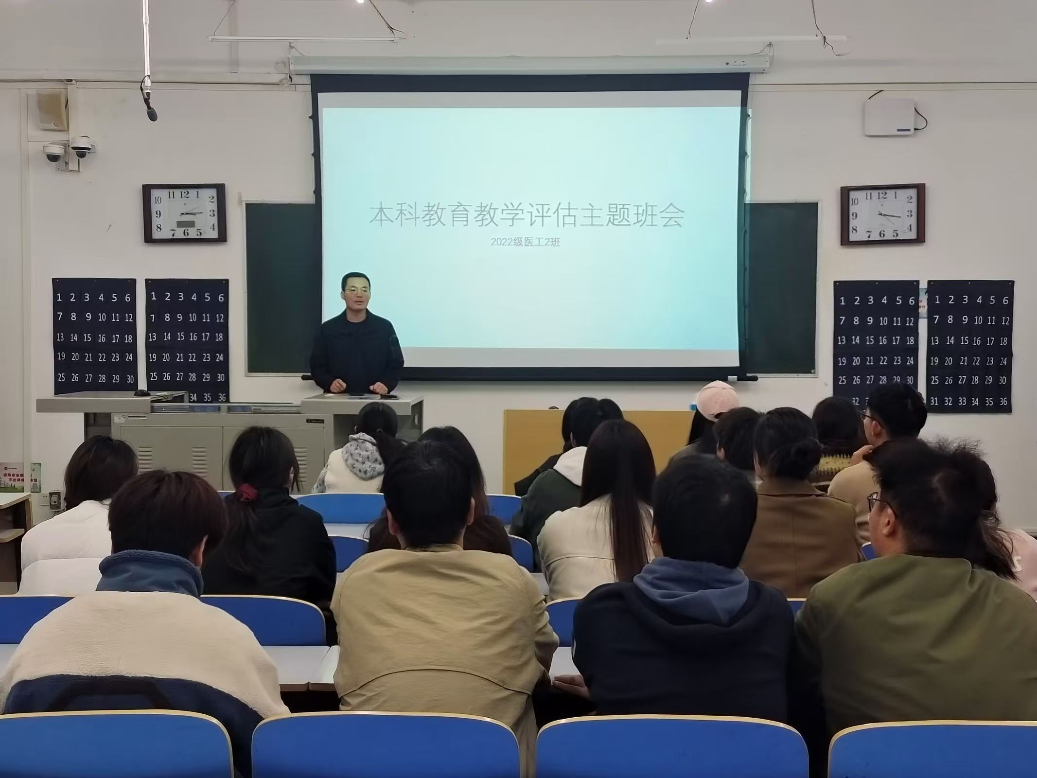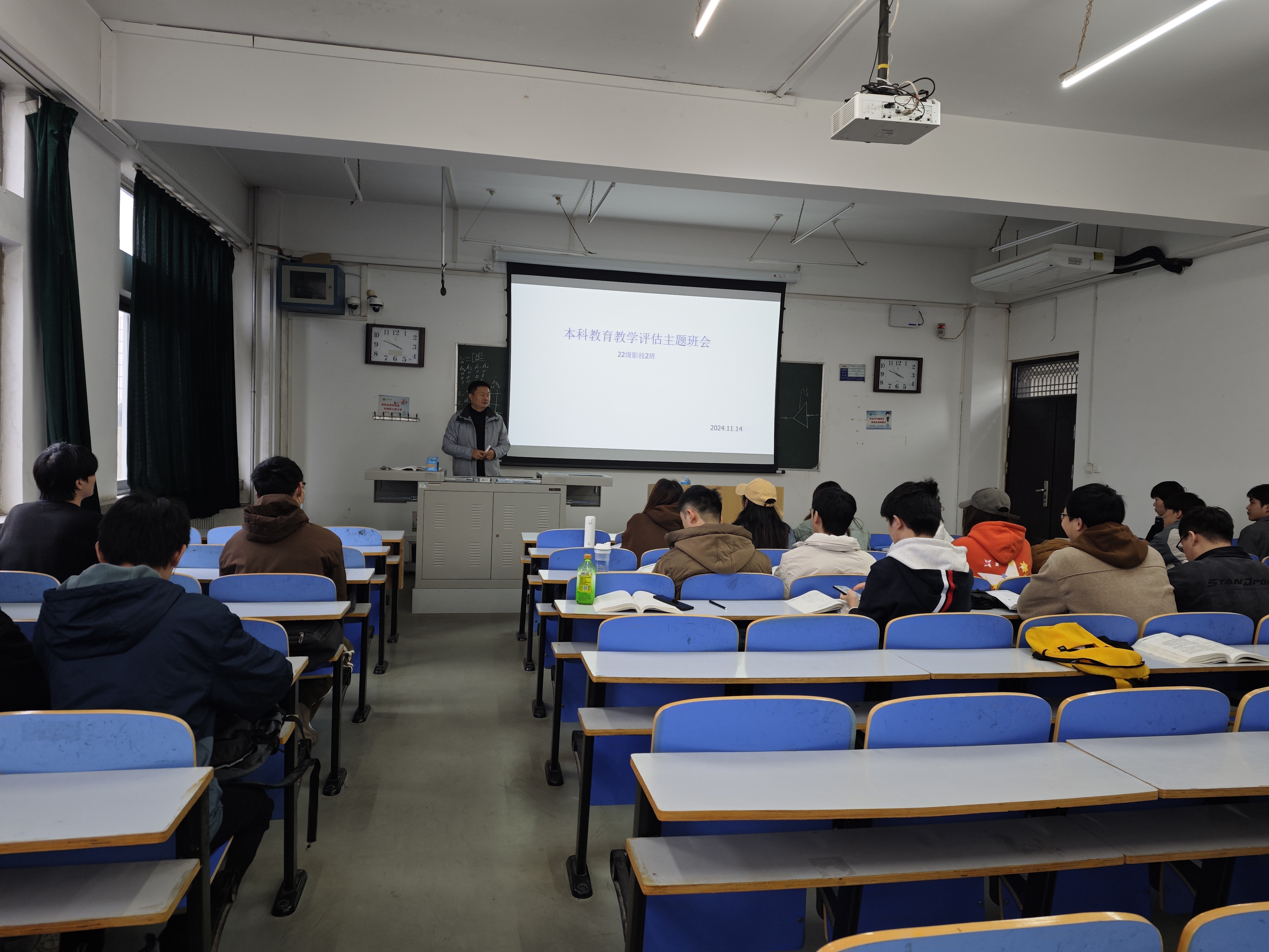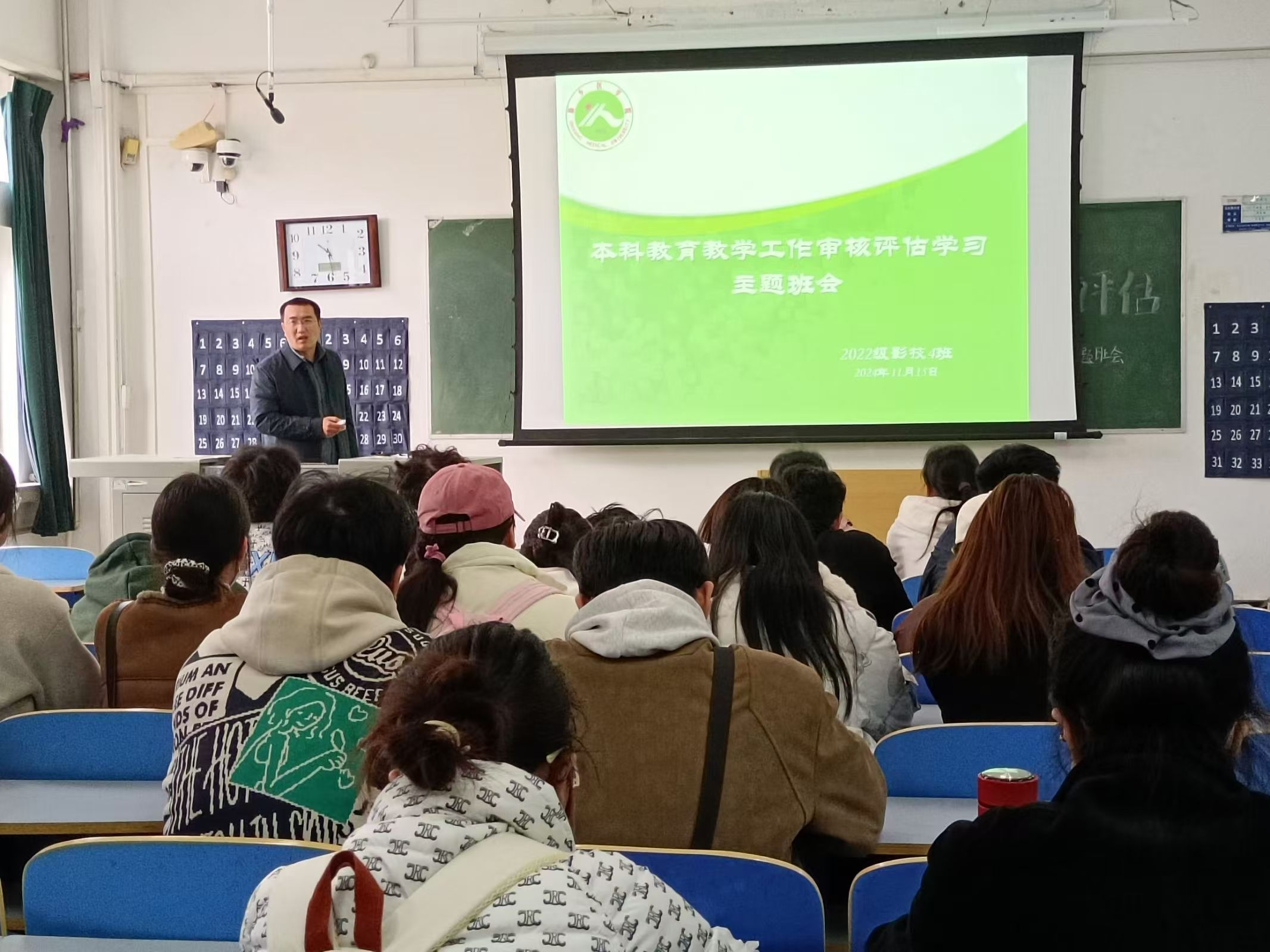 同时我院各班班主任积极响应号召,组织召开主题班会,由班主任带领同学们学习关于本科教育评估的各项要求,告知同学们本科教育评估对于大学生学业生涯以及人生发展的重要性,悉心建议同学们抓好现阶段学习任务,提高注意力,百分百投入到学习中去,要求每位同学都要以高度的责任感和使命感,积极参与到审核评估的各项准备工作中。