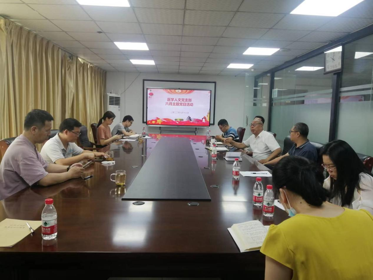 【图/饶丽丽 文/郭玮】6月18日上午,医学人文党支部在西校区综合楼7楼会议室召开“学习党的十九届六中全会精神”主题党日活动。医学人文学院全体党员干部参加了活动,活动由支部书记郭冬梅主持。