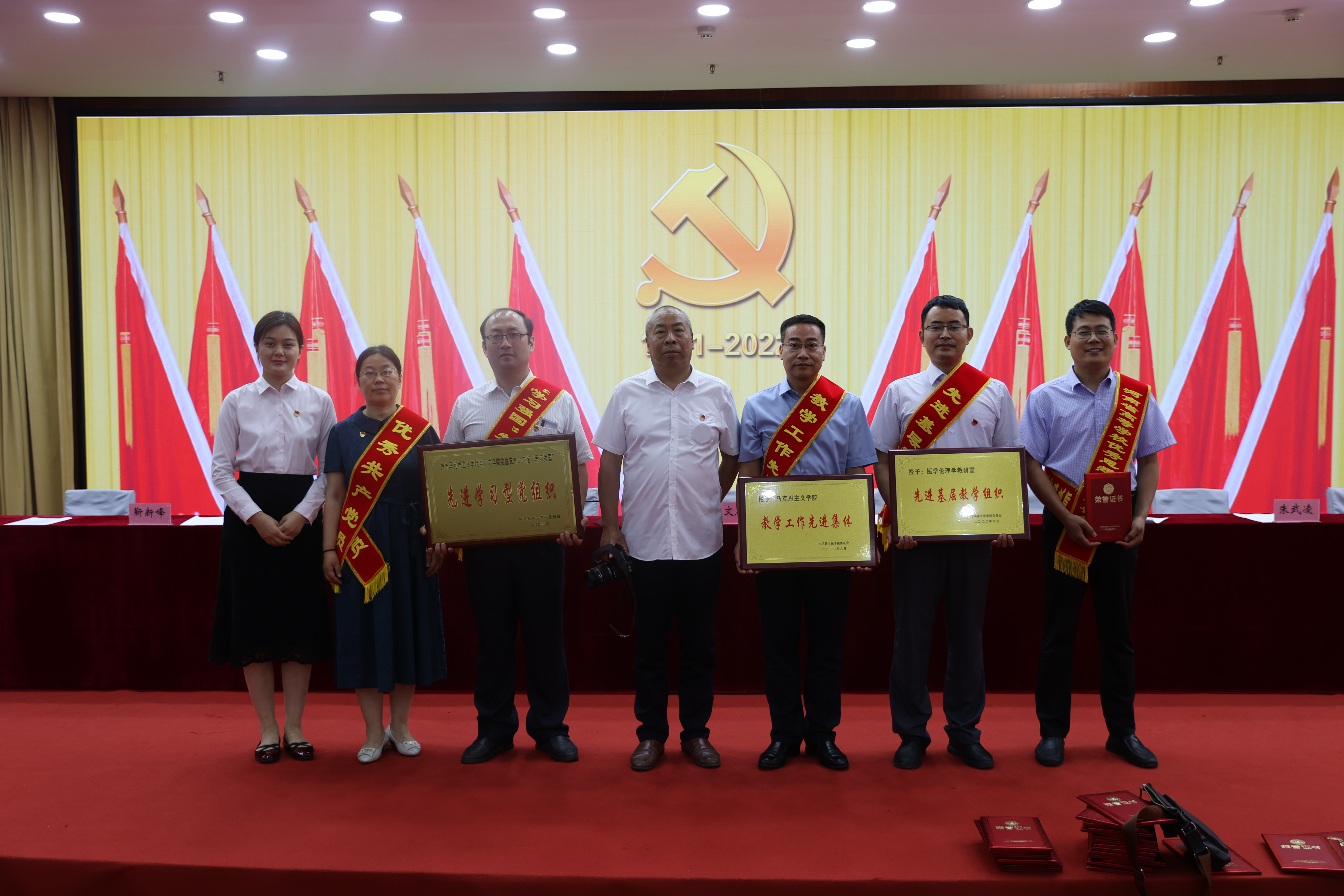 (图文/梁克远 饶丽丽)为全面贯彻习近平新时代中国特色社会主义思想和党的十九大及十九届历次全会精神,深入开展能力作风建设,激励全校基层党组织和广大党员在常态化疫情防控工作及学校发展建设中充分发挥好战斗堡垒作用和先锋模范作用,推进学校事业发展再上新台阶,以优异成绩迎接党的二十大胜利召开,学校党委在6月29日召开庆祝建党101周年暨“七一”表彰大会,马克思主义学院与人文学院党总支斩获多项荣誉,同时,饶丽丽老师还代表新党员在大会上进行了表态发言。斩获的荣誉分别是:
