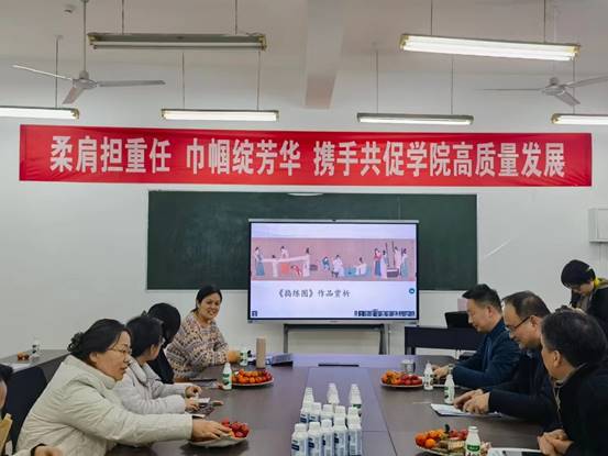 学院女教师饶丽丽带来古画鉴赏,通过《捣练图》中12位唐代仕女形象带领大家一起梦回大唐,感受画中仕女冲破封建礼节束缚,积极参加劳动的快乐,色彩的绚丽以及唐代女子的自信美,使在场师生体会到欣赏一副画作的雅趣。