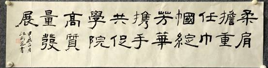 活动最后,学院女教师江利蕊根据本次活动主题挥毫泼墨,江老师现场介绍其书法作品的创作意图、作品寓意及章法风格,现场师生共赏江老师的书法作品,在其朴厚的书风中感受到书法的意蕴。