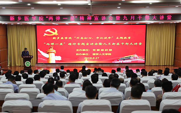 为响应学校“不忘初心、牢记使命”主题教育深入开展,学习和弘扬“两弹一星”精神,9月27日,由校党委组织部主办,学生处与我院协办的“两弹一星”精神专题宣讲会在第一报告厅举办。青海民族大学“两弹一星”精神宣讲团受我院邀请为全校师生带来音诗画式情景宣讲——“两弹一星”精神之青春之光。青海民族大学副校长肖玉兰,校领导陈建国、任文杰、郝红军、陈清江、刘国庚、文建国、雒保军、邵金远,青海民族大学学生工作处负责人,学校全体处级干部、党政管理岗科级干部、教职工党支部书记一同观看了宣讲会(职工专场)。郝红军主持宣讲会。