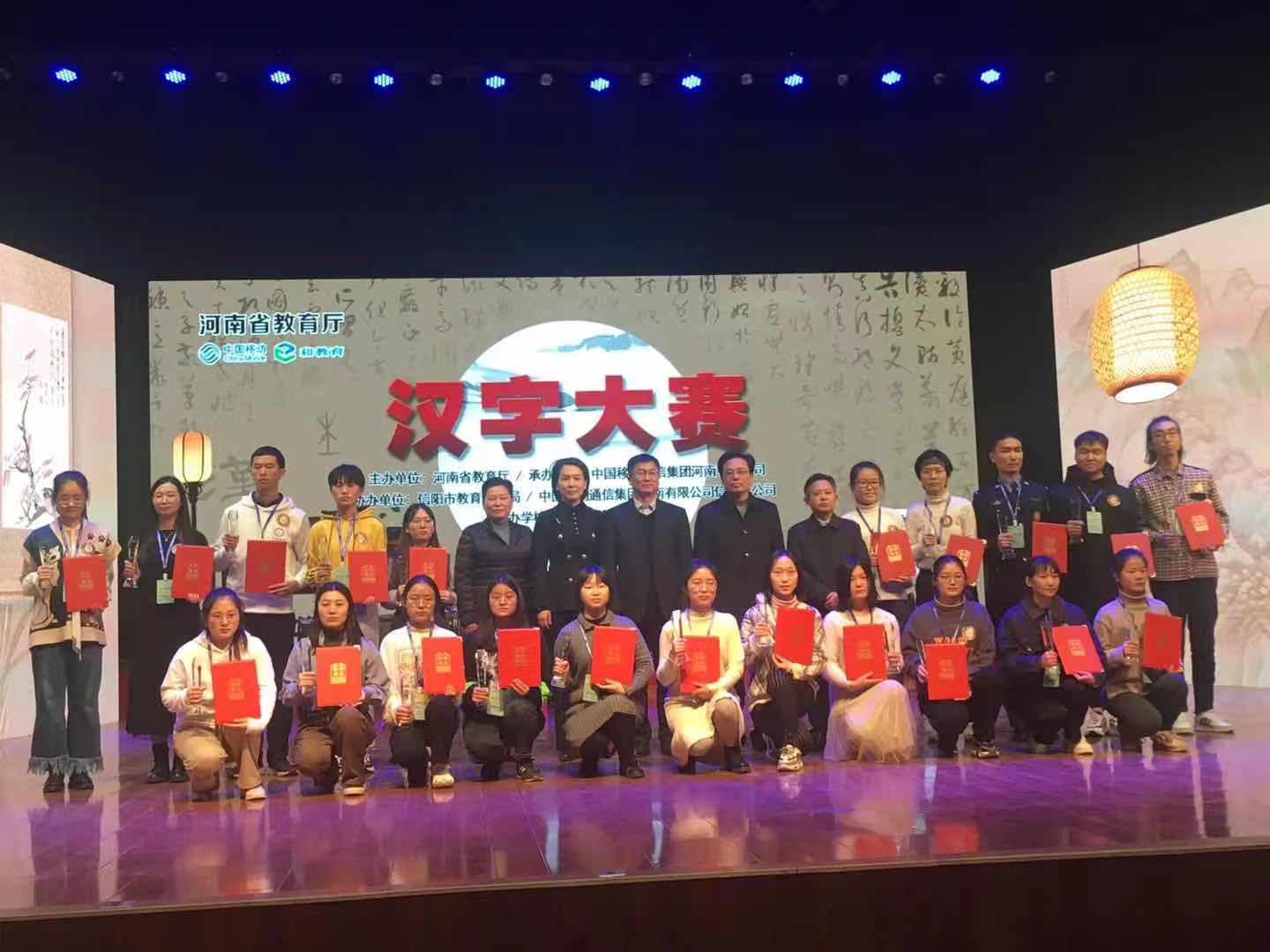 近日,由河南省教育厅主办的2020年汉字大赛总决赛在信阳市第九中学落下帷幕,我校参赛学生张瑶荣获高校组一等奖,冯楷遇、牛胜楠荣获高校组二等奖;我院方天云老师荣获“最佳辅导老师”称号;我校荣获高校组“优秀组织奖”。