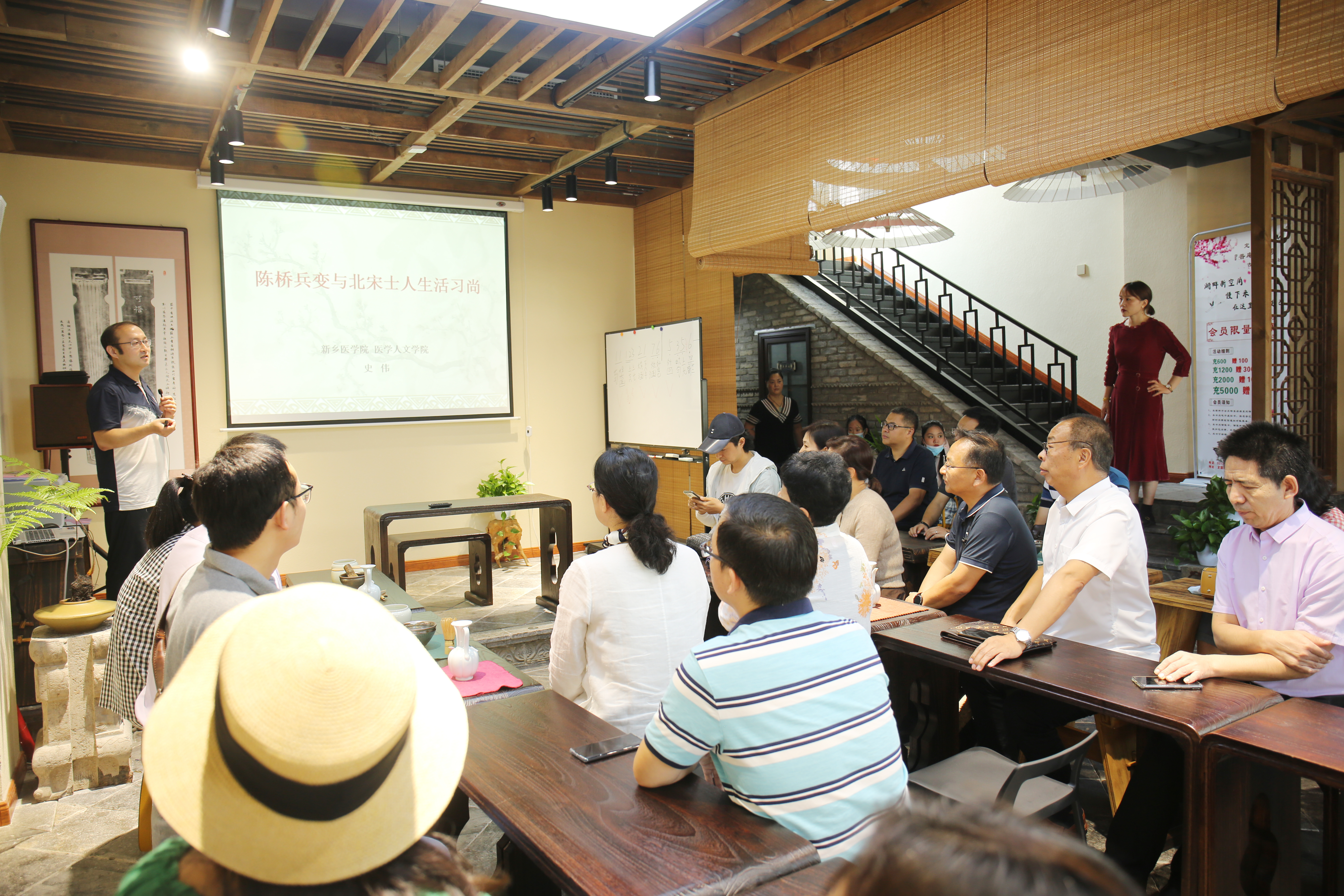 随后由历史学博士史伟教授带来文化讲座《陈桥兵变与北宋士人生活习尚》。他从北宋建国背景及定下的“重文轻武”策略讲起,描述北宋士人经济、文化、生活的方方面面,并透过史实的真相,分析隐藏其后的历史规律,使在场听众一起神游至中国古代文人士子的乐园--北宋,不胜向往。