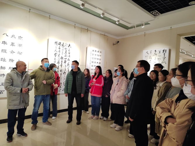 (图/文 江利蕊)2月26日下午,我院美术教育教研室组织学生赴新乡美术馆开展校外艺术实践教学活动。医学人文学院直属党支部副书记郭跃伟和美术教研室彭彤、张锦伟、江利蕊三位老师参加本次活动。学院三位研究生与书法社团的学生一同前往新乡美术馆观摩学习“青山绿水普惠有约”新乡书法精品展。