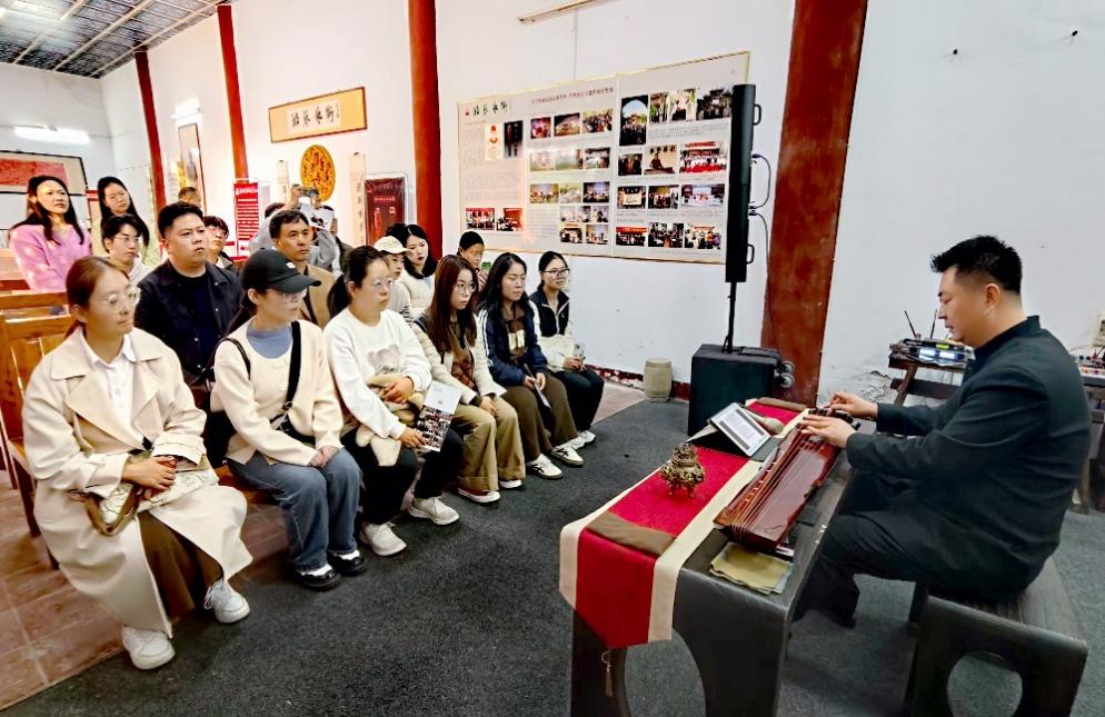 随后,在“中和堂”,新乡市音乐家协会副主席、古琴艺术研究会会长、非物质文化遗产潞王琴艺术代表传承人郝丙鹏老师给同学们详细介绍了明代传世古琴——“潞王琴”的形制结构、演奏技法及分类馆藏,并现场演奏了《流水》《归来》《酒狂》及《平沙落雁》等经典古琴曲目,同学们在悠远悦耳的琴声中感受到了古琴的深厚文化和艺术魅力。