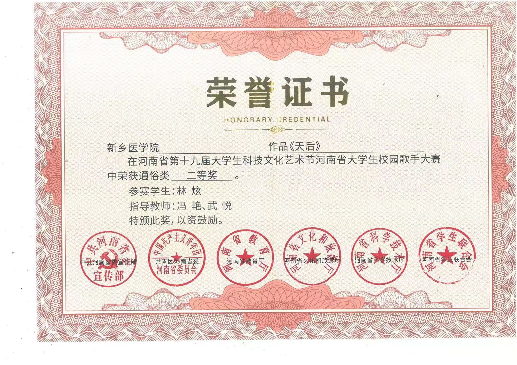 5月,我院冯艳、臧佳莉2名教师为华亿在线手机版(大中国区)第十四届大学生校园歌手大赛决赛担任评委,推出3位学生参加河南省大学生校园歌手大赛,1名学生获通俗唱法组二等奖。