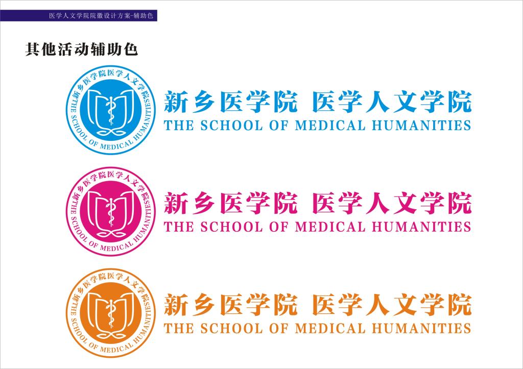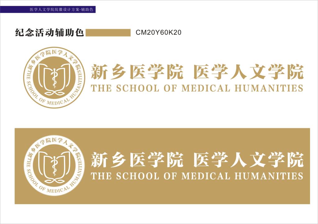 书卷展开造型符号,人文学科是广袤人文知识的学科,以书卷层叠展开寓意人文知识典藏丰厚以及学科知识丰富内容,以此体现医学人文学院的学科背景.另一方面书卷是典型教育符号,进一步体现医学人文学院教书育人的宗旨。