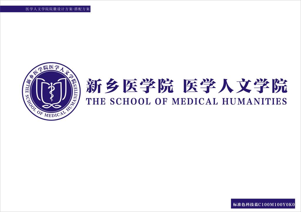 整体院徽设计以严谨的科技蓝表现,整体院徽设计融合徽章造型,造型线条流畅严谨,寓意清晰丰富,适合医学人文学院不同场合的品牌推广与传播。