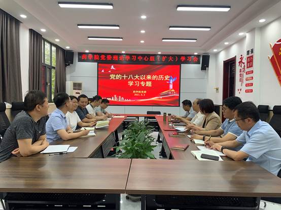 6月3日上午,学院党委理论学习中心组(扩大)专题学习会在一楼会议室召开,专题学习了党的十八大以来的历史,学院党政班子成员、党委委员、支部书记参加学习会。