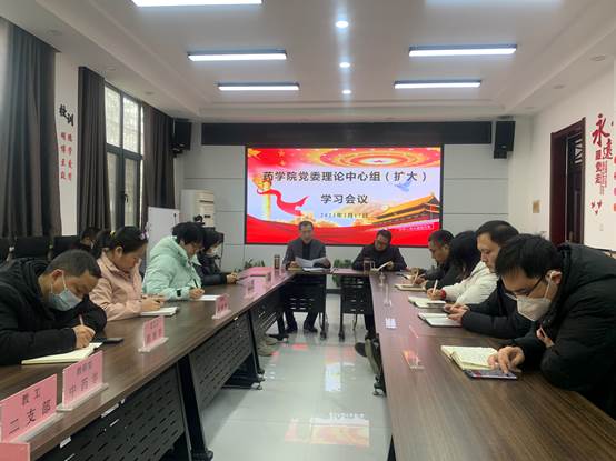 2月17日下午,学院党委理论学习中心组(扩大)学习会议在药学院一楼会议室召开。学院班子成员、各支部书记、教研室负责人参加学习。会议由院党委书记贾岩龙主持。