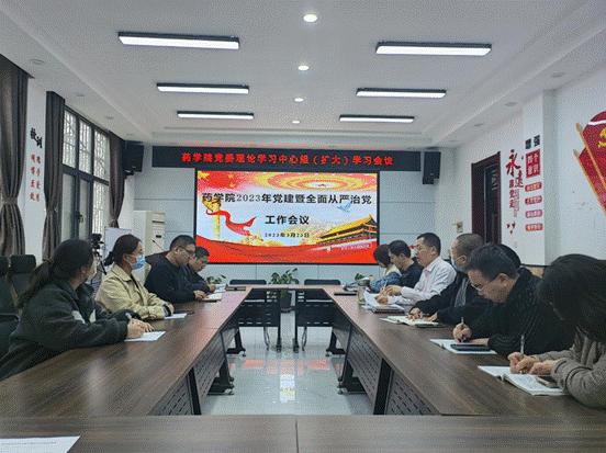 3月23日,药学院党委召开2023年党建暨全面从严治党工作会议。学院领导班子、各党支部书记及各教研室主任和研究生党员代表参加。会议由学院党委负责人主持。