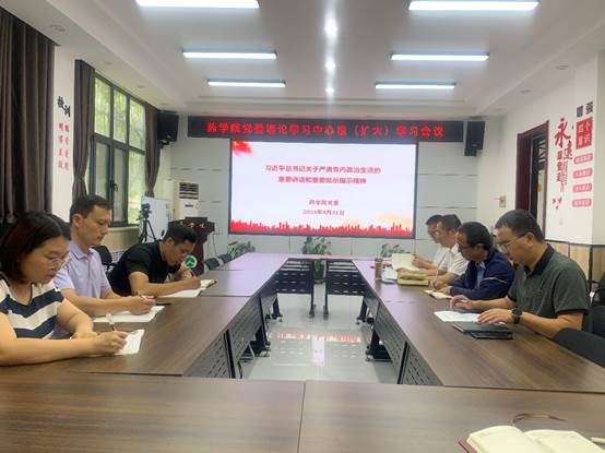 8月31日上午,学院党委理论学习中心组(扩大)召开学习会议,学院班子成员、各支部书记参加学习。会议由党委书记贾岩龙主持。