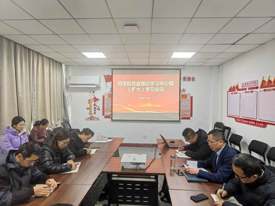 12月18日上午,药学院在401会议室举办党委理论学习中心组(扩大)学习会议,集中开展习近平文化思想专题学习。学院领导班子,党委委员,各支部书记,教研室/实验室主任参加会议。会议由学院党委书记贾岩龙主持。