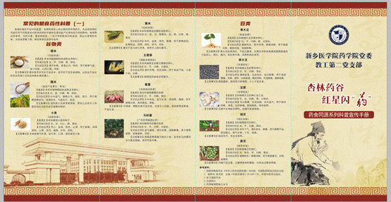 随着生活水平的提高,人们越来越注重健康养生。药食同源的理念可以为公众提供科学养生的指导,通过食用具有特定保健功能的食品来达到预防疾病、延年益寿的目的。为此,药学院教工第二党支部制作了药食同源系列科普宣传手册。