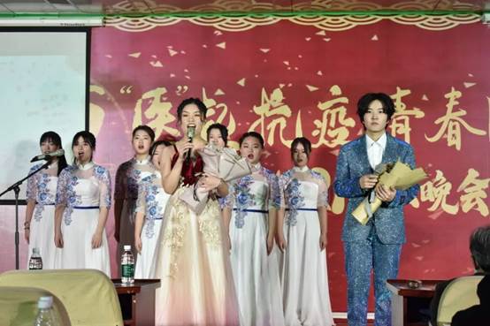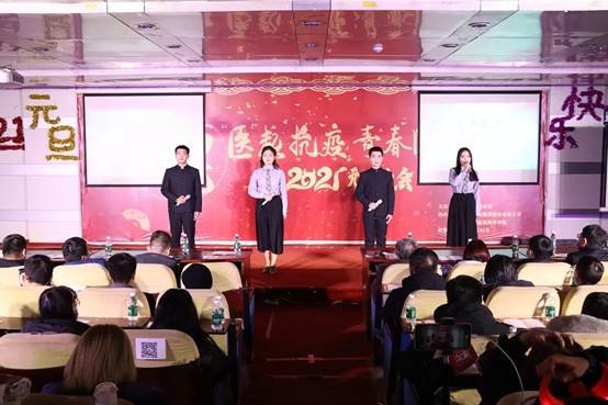 随着动感的音乐响起,晚会在激情洋溢的《YES OK》舞蹈中拉开帷幕。歌曲《平凡天使》致敬那些在疫情中默默无私贡献但又不求任何回报的“平凡天使”。这首歌里所提到的每一丝善意,揪住我们每一个平凡人的心。朗诵《人民至上,防控一线筑堡垒》彰显出生命至上、人民至上的伟大抗疫理念。白衣执甲,逆行出征,一方有难,八方支援,这是深植于中华民族血脉的同胞情义,更是守望相助的人间大爱。独唱《游》展现了少年人的风华正茂,少年人,少年游,历经磨难不怕愁;功名成,功名就,留得情长在身后。舞台剧《疫不容辞》旨在致敬每一位在疫情期间站在人民背后的英雄,他们在危难之时仍选择义无反顾逆行,彰显责任与担当。RAP《飘向北方》诠释了对家乡的思念,当我们不断在外漂泊的时候,最想念的总归是家乡;当我们经历过生活的酸甜苦辣之后,最牵挂的依旧是家乡。合唱《山河无恙在我胸》为战疫中所有努力的中国人点赞!“选择了多少向死而生,终于等到冰雪消融;经历了多少负重前行,今夜光芒照亮天空…”——无数英雄逆行出征,守护生命,致敬白衣天使,致敬抗疫英雄!歌曲《祝你一路顺风》是王栋老师专门为2020届毕业生送上的倾情之作。由于疫情原因,2020届毕业生度过了一个特殊的毕业季,来不及相拥相庆,来去匆匆!王栋和毕业后又考上我院研究生的2020届毕业生同台演唱,展现了老师对学生的真诚祝福和殷切期望。戏曲《空城计》华夏瑰宝,生生不息。从刘宇飞老师的一颦一笑之中,仿佛能看到当时诸葛亮一人抚琴面对百万大军的洒脱气概。李鹏老师和贾岩龙老师演唱的《涛声依旧》和《多想在平庸的生活拥抱你》优美、缠绵,意境深远,蕴涵着一种淡淡的温婉和忧愁。民族舞《彩云之南》用优美的舞姿展现出来自少数民族的纯朴风情,在这里,可以看到如孔雀般的姿态,把你带到彩云之南。歌曲《天下相亲与相爱》传唱至今,带给我们许多美好的回忆。正是我们大家相亲相爱,守望相助,才战胜了一切的困难灾害,迎来了社会的团结和谐。相声《我想出名》用滑稽的语言展示想要出名的一些做法,带给大家欢声笑语之余,教会我们做事不仅要仰望星空,更要脚踏实地。一曲合唱《红日》告诉我们,疫情虽未过去,红日终将升起,我们终将战胜一切困难,扫除一切阴霾。晚会在合唱中落下帷幕,本场元旦晚会以“医起抗疫,青春闪药”为主题,共15个节目,融合舞蹈、朗诵、歌曲、小品等多种表演形式,为在场观众带来一场精彩纷呈的视听盛宴!