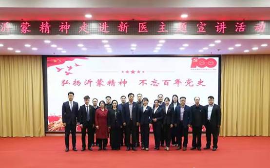 3月28日上午,中共临沂市委党校鲁南制药集团分校沂蒙精神主题宣讲团应邀前来我院开展“弘扬沂蒙精神 不忘百年党史”主题宣讲活动,活动在第一报告厅举行。校党委委员、工会主席邵金远出席。党委宣传部、招生与就业处负责人,药学院班子成员以及药学院200余名师生一同观看。