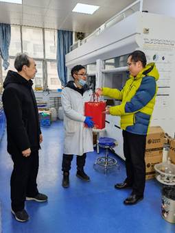 虽然寒假已至,但由于受疫情的影响,我院仍有少部分研究生未能返乡。为了让未返家的同学过好这个特殊的新年,感受药学院大家庭的新春气息,学院党委书记卢光洲、副院长贾岩龙、研究生培养与学位点办公室主任高庆贺、研究生党支部书记高一乔在农历小年当天,走进学生宿舍及实验室,代表学院为全体留校研究生送上新春大礼包及新年问候。