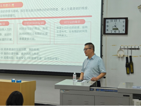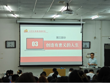 课堂上,徐书记紧扣“人生是什么?”“青春是什么?”的主题,以层层递进的方式,从人生观的定义,正确的人生观,创造有意义的人生三个方面为同学们展开讲解。他指出,正确的人生观包含科学高尚的人生追求,积极进取的人生态度,并从人生的长度、宽度、高度、强度四个维度提出创造有意义的人生的方法与途径。讲解最后,面对青春之问的核心命题,他指出,当代大学生要勇于担当新时代赋予的历史责任,应当与历史同向、与祖国同行、与人民同在,在服务人民、奉献社会的实践中创造有意义的人生。