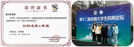 我院研究生王娜同学参加第十二届“全国大学生药苑论坛”竞赛获得创新成果三等奖2019.11.24