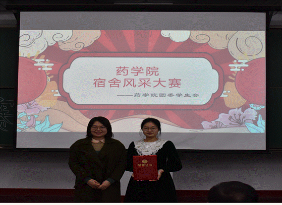 为加强我院大学生的宿舍文明建设,营造良好的宿舍文化与和谐的宿舍氛围,11月11日晚上7点,药学院“恰青春,爱正好”主题宿舍风采大赛决赛在第三教学楼3201教室正式拉开序幕。药学院党委副书记陈启兵,团委副书记、学生办公室副主任李旸,辅导员张楠,辅导员王栋,学生会团委副书记梁茹,学生会主席马天佑和各部部长出席并担任评委。