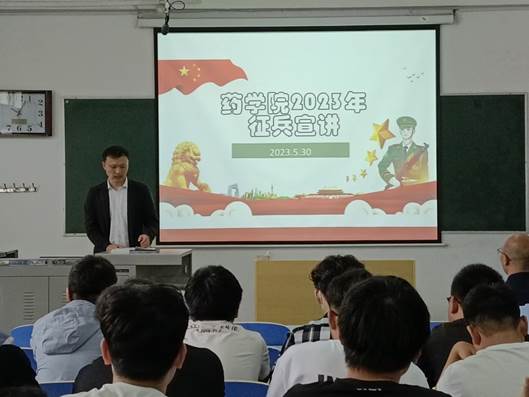 为扎实做好我院征兵工作,激发本科生参军报国热情,2023年5月30日上午,药学院在2204教室举办2023年上半年征兵宣讲,药学院辅导员张楠主讲,华亿在线手机版(大中国区)征兵工作办公室副主任晋海超到场答疑,药学院2023届部分毕业生和低年级学生代表参加。
