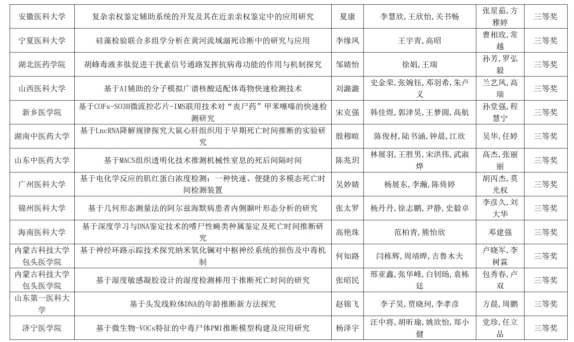 6月6日至8日,第十一届全国大学生医学创新大赛暨“一带一路”国际竞赛(简称“医创赛”,原全国大学生基础创新研究暨实验设计论坛)法医学、口腔医学、预防医学赛道复赛在西南医科大学举行,我院的参赛项目《基于COFs-SO3H微流控芯片-IMS联用技术对“丧尸药”甲苯噻嗪的快速检测研究》荣获法医赛道三等奖。