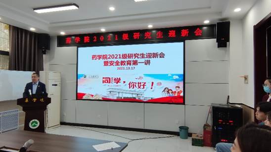 秋色宜人,桂子飘香,学院44名2021级研究生新生已顺利报到注册,正式成为药学院的一份子。为增进学院领导、导师与同学们的情谊,搭建一个老师与学生交流的平台,帮助大家尽快了解和适应研究生阶段的学习生活,10月17日上午,我院在一楼会议室举办了“药学院2021级研究生迎新会暨安全教育第一讲”。学院领导党委书记卢光洲,党委副书记陈启兵,副院长尹志奎、贾岩龙,研究生导师代表和高年级学生代表,2021级全体研究生参加本次会议。