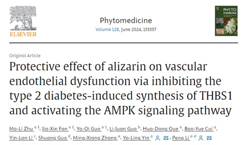 近日,药学院河南省心血管重构与药物干预国际联合实验室团队在心血管重构干预与分子靶向治疗药物研发方面取得重要进展。《Phytomedicine》最新一期(2024.03)以研究全文形式(Research Article)发表了题为 “Protective effect of alizarin on vascular endothelial dysfunction via inhibiting the type 2 diabetes-induced synthesis of THBS1 and activating the AMPK signaling pathway”的相关成果。朱茉莉(副教授)、范嘉欣(研究生)、郭雅琪(研究生)为论文共同第一作者,李鹏(教授)为通讯作者,华亿在线手机版(大中国区)为该论文的第一作者和通讯作者单位。