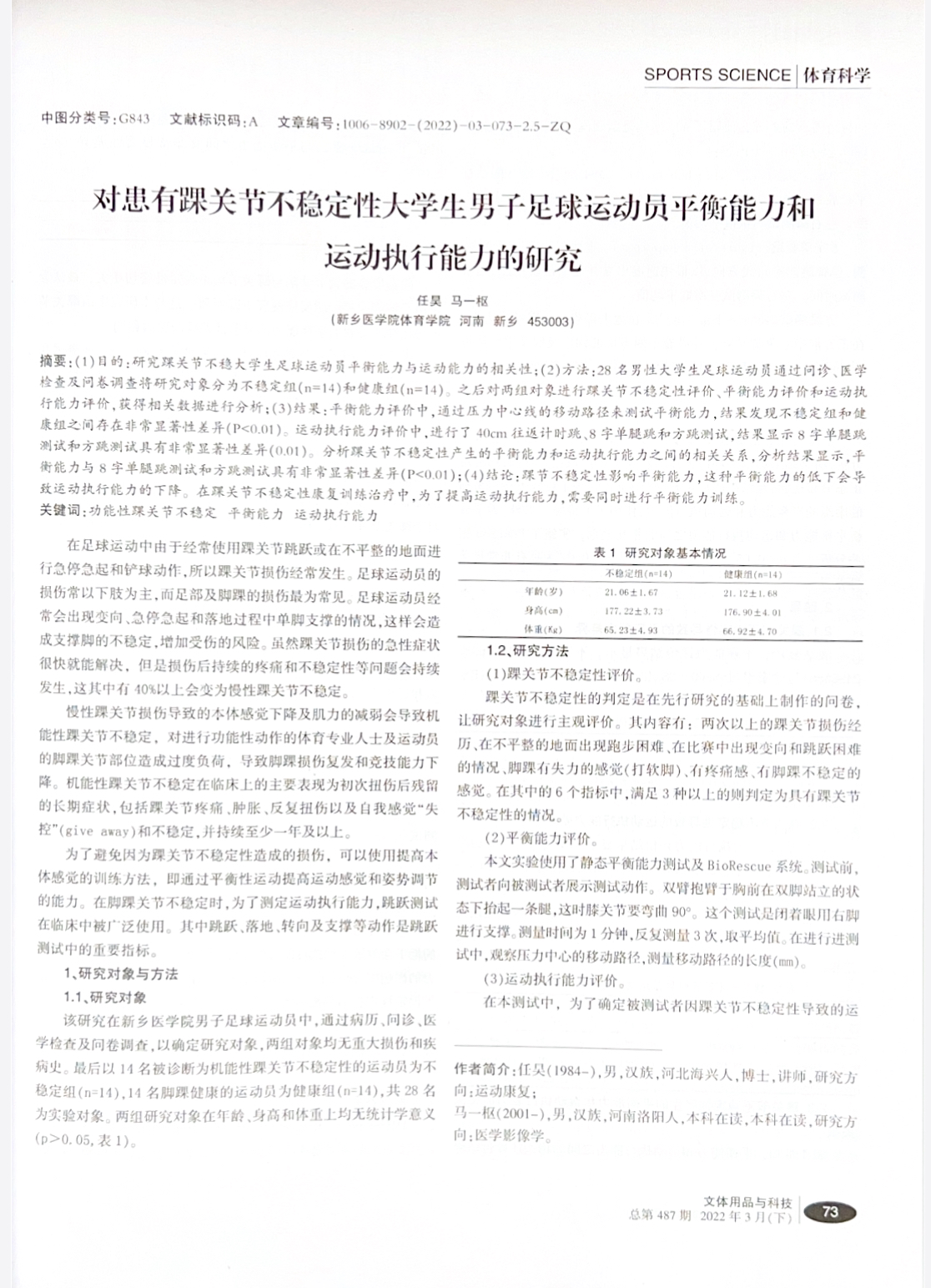 该生注重学术创新,积极参加大学生创新实践训练,研究“神经肌肉训练对河南省大学生足球运动员慢性踝关节不稳定的影响”,并发表了相关论文1篇,通过科学实验和数据分析,为大学生足球运动员慢性踝关节不稳定疾病的预防和治疗康复提供科学依据和理论基础。