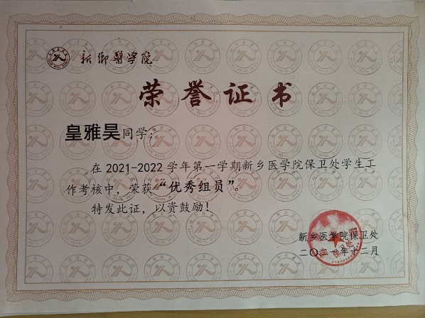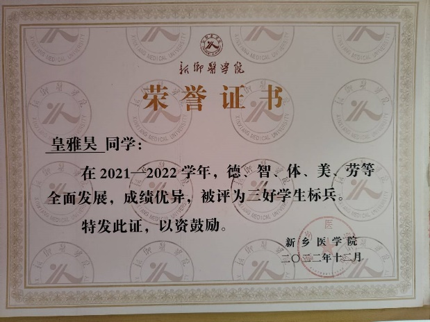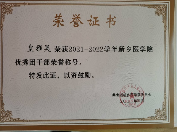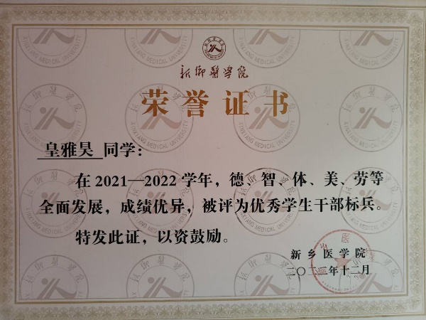 皇雅昊,男,就读于2021级影像二班,现担任2021级医学影像学年级长。