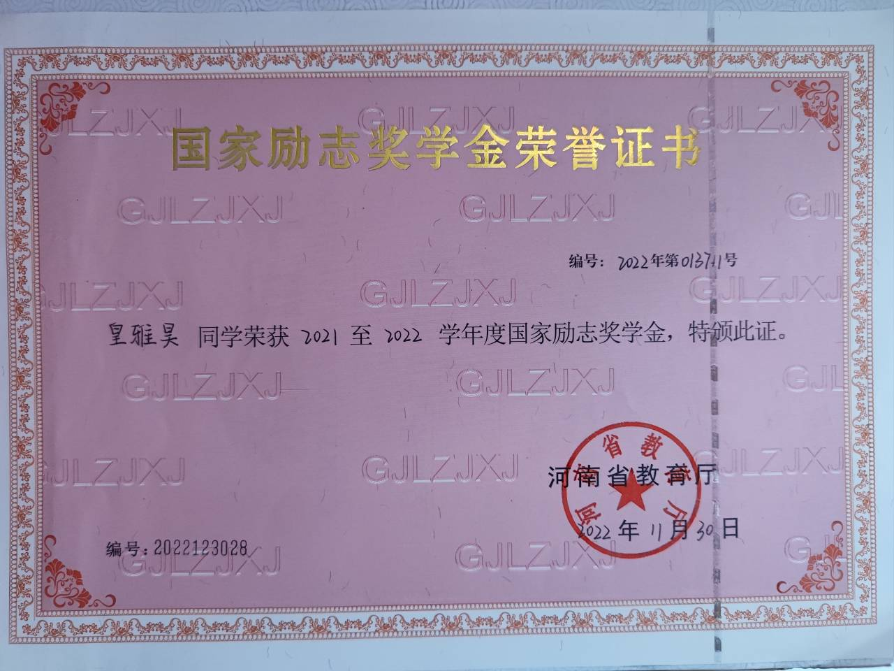 思想上,该生不断加强思想政治学习,每天积极从学习强国中获取党和国家的发展形势、国内外的局势变化,努力学习理论知识;积极参加党课培训,态度积极向上。在严格要求自己的同时,还积极鼓励优秀的同学向党组织靠拢。该生以学习理论为指导,不断取得进步,连续两年被评为“三好学生”、“三好学生标兵”,2023年6月荣获“河南省三好学生”荣誉称号,努力向着一名具有较为扎实的基础知识和专业知识、一定组织能力和社交能力的共产党员迈进。