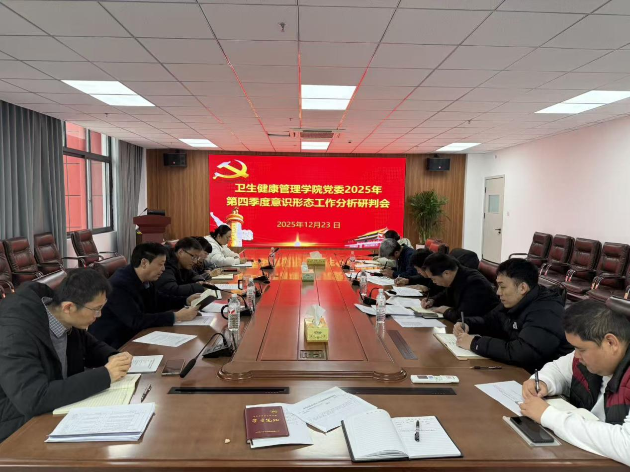 为深入贯彻落实上级关于意识形态工作的决策部署,进一步加强和改进学院意识形态工作,2025年12月23日,卫生健康管理学院党委在316会议室召开了第四季度意识形态工作分析研判会。会议由学院党委书记崔金奇主持,学院党政班子成员、相关科室负责人及各党支部书记参加了此次会议。