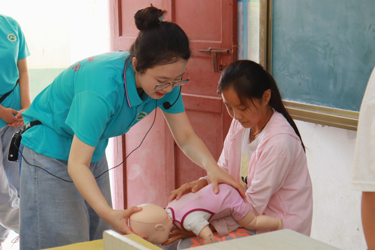 此次志愿活动内容丰富、寓教于乐。在“急救英雄·CPR生命守护活动”中,宣讲员生动讲解“CPR与海姆立克法”并使用Little Anne假人模型为同学们展示CPR及婴儿海姆立克正确操作,学生们积极参与互动,亲身体验急救操作。随后又一起演绎《红旗渠》,领诵诗歌《七律·红旗渠》,观看电影《理想照耀中国》,在教学相长中,让学生们真切地感受到在不同的历史时期所承载的力量和希望。最后带领学生们学习七步洗手法等内容,嘱托学生们在生活中做好预防疾病的第一步。