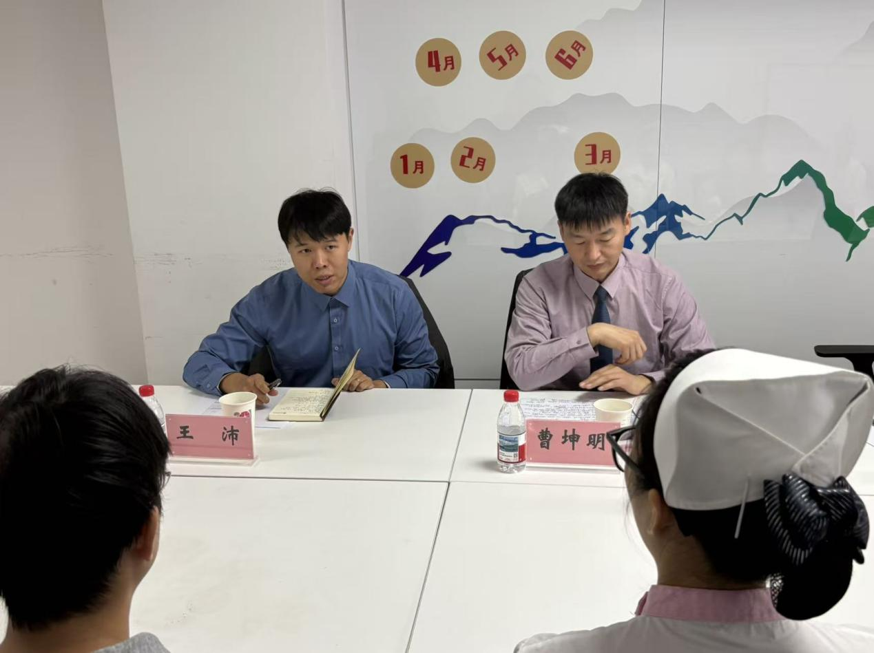 护理学院副书记曹坤明对医院的精心培养与周到安排表示衷心感谢,并随后介绍了学校与学院的发展概况、办学特色以及本届实习生的整体情况。在此基础上,重点阐述了此次“访企拓岗”的目的,希望深入了解医院的人才需求规划,为毕业生挖掘和争取更多优质就业机会,打造实习就业一体化,推动院校合作从实习培养向人才输送延伸。