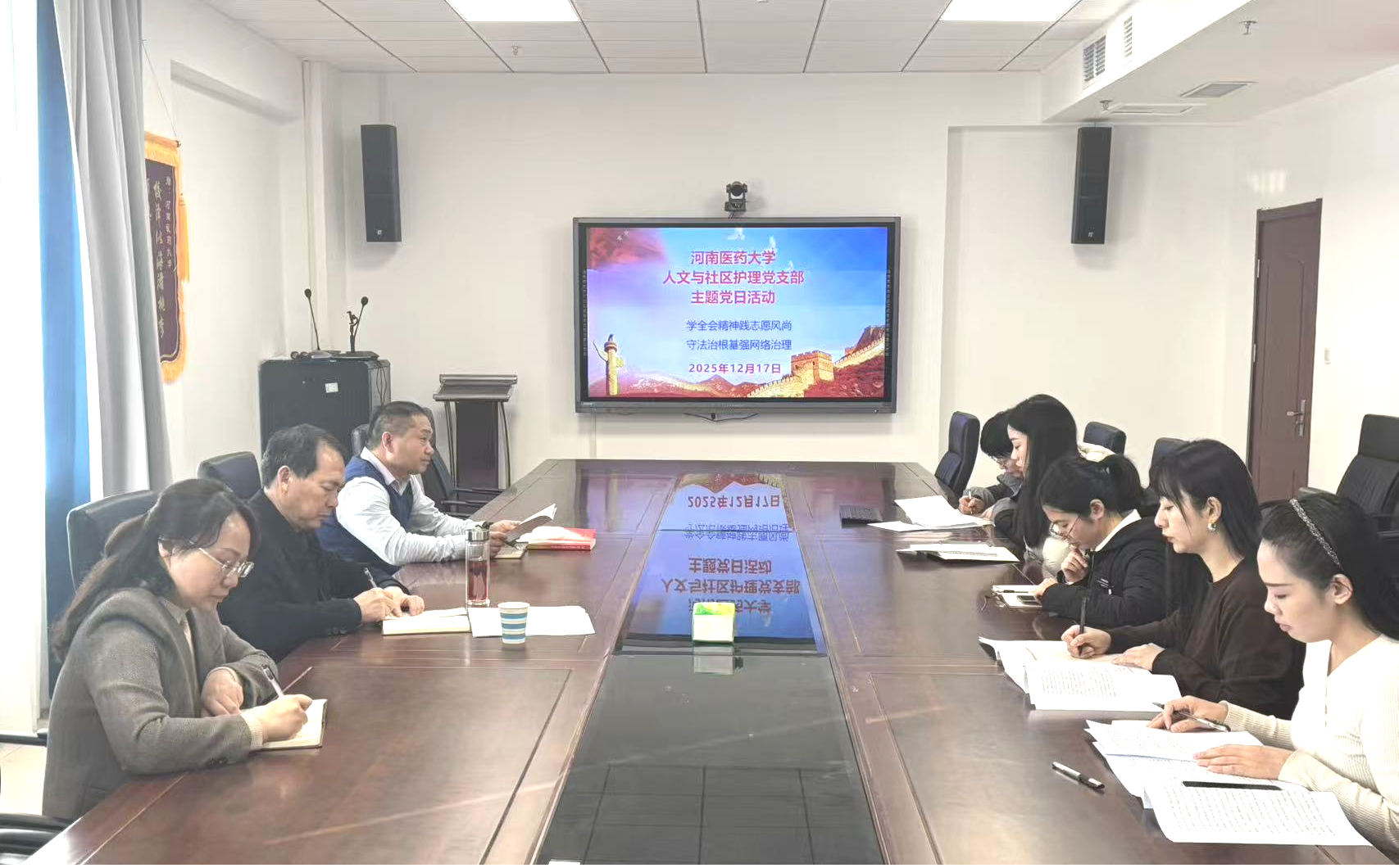 12月17日上午,校党委委员、副校长雒保军参加人文与社区护理学党支部主题党日学习活动。人文与社区护理学党支部全体党员参加学习研讨。
