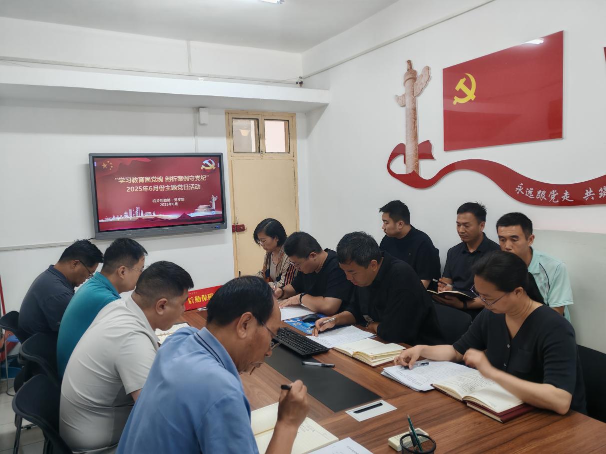 6月12日,机关党委后勤一支部在务实楼二楼会议室组织开展6月份“学习教育固党魂,剖析案例守党纪”主题党日活动,全体党员参会,会议由组织委员武亚昆主持。