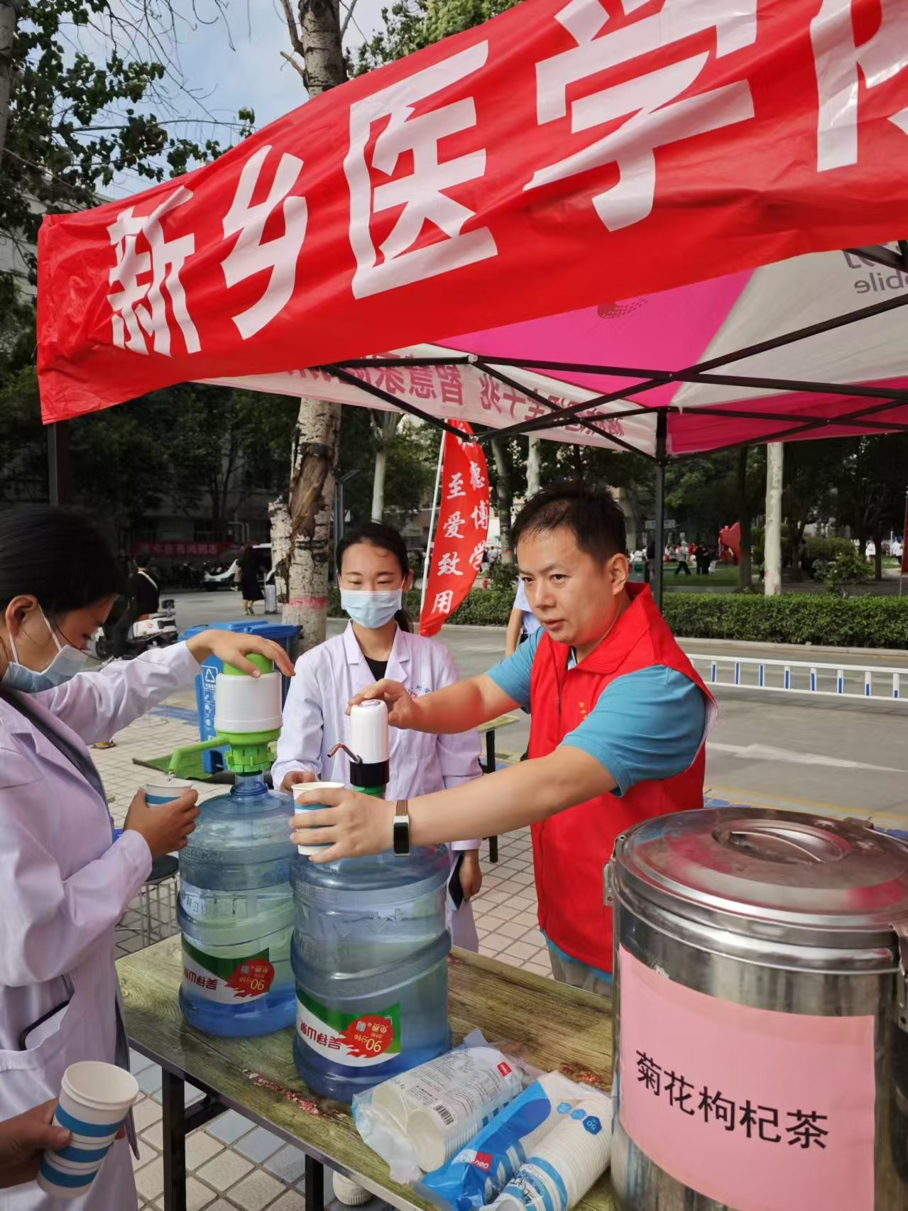 学校后勤组建以机关后勤第一党支部、机关后勤第二党支部及机关党委保卫支部三个支部党员为基础的志愿服务队,开展以党建为引领,党建工作与迎新服务深度融合,涵盖绿色低碳、美丽中国宣传,后勤党员冲锋在前的,为新生、家长提供咨询、休息及饮水、零食、纸巾、保洁、驱蚊用品等各类保障服务的志愿服务活动,并在河南志愿云系统发布。