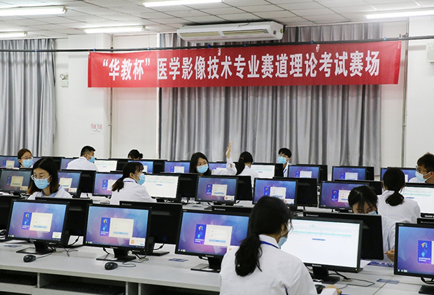 本赛道分为理论知识测试及实践技能操作两个环节,其中实践技能操作包括MRI、DR及CT技能操作项目。参赛学生娴熟的实践技能、良好的职业素养和奋发的精神风貌给现场裁判和观摩人员留下了深刻的印象。本次赛事全程直播,师生在观摩室或网上观看了赛事进展。