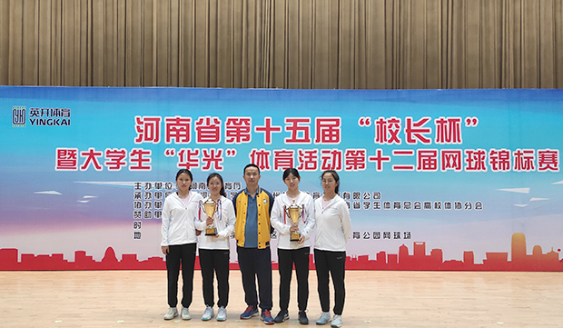 5月10日至17日,由河南省教育厅主办的河南省高校第十五届“校长杯”网球赛暨大学生“华光”体育活动第十二届网球锦标赛在黄河科技学院网球场举行。经过激烈角逐,我校荣获“校长杯”团体冠军、学生组女子团体冠军的好成绩。